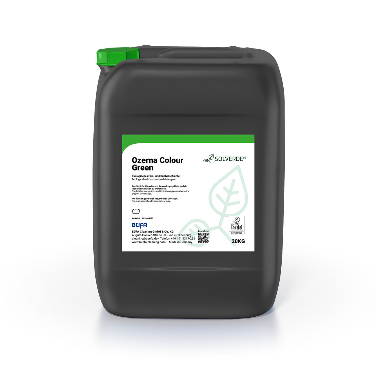 Ozerna Colour Green is een milieuvriendelijk wasmiddel gemaakt van hernieuwbare grondstoffen. Het is vrij van optische witmakers, bleekmiddelen en fosfaten en heeft uitstekende vet- en eiwitoplossende eigenschappen. Het milde en gekleurde wasmiddel is effectief vanaf 40 °C en zorgt ervoor dat je kleding grondig en mild wordt gereinigd met een lage dosering. Ozerna Colour is getest volgens het EU Ecolabel en maakt deel uit van het BÜFA Care 4.0 natreinigingsproces.